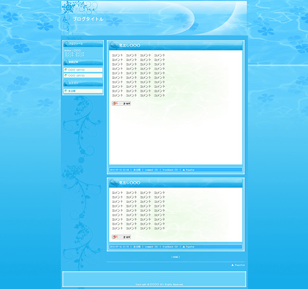 FC2ブログのデザインイメージを作成しました。 青い透明な水面で癒しを感じる雰囲気に仕上げました。